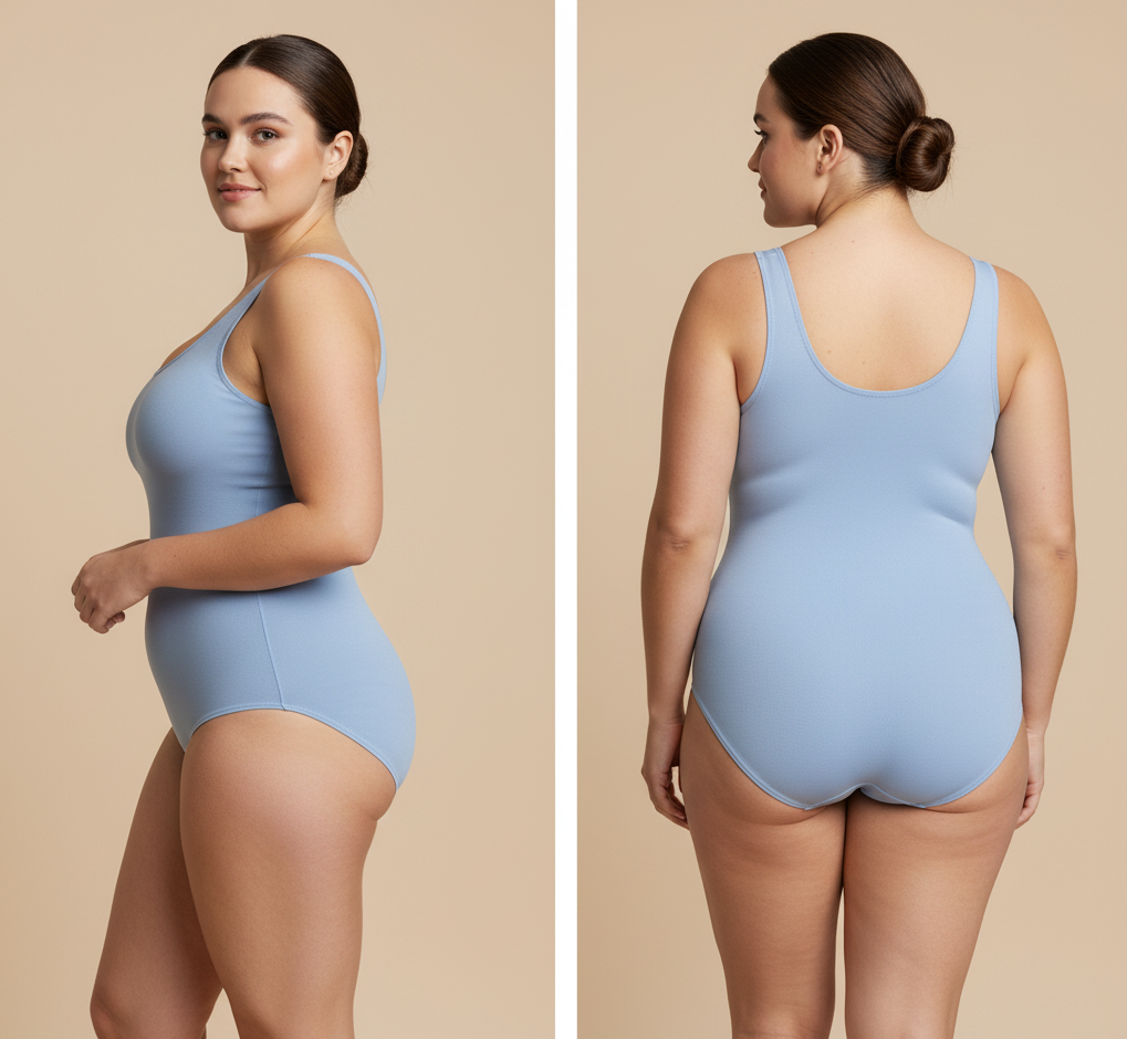 Thanks to its gentle, targeted compression, the bodysuit helps to reshape the waist and support the abdominal area, restoring confidence from the very first use.